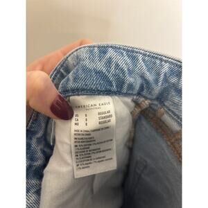 American Eagle Curvy Straight Jeans Womens 8 Light Wash Distressed Ripped