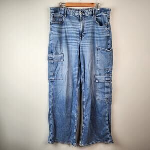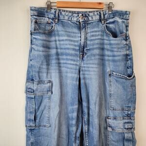 American Eagle Curvy Super High-Rise Baggy Wide Leg Cargo Jeans 18 LONG