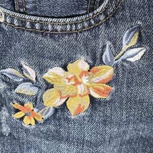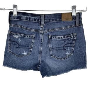 American Eagle sz 0 Dark Cut Off Denim Jean Distressed Shorts Floral Embroidery. No stains. These are in gently preloved condition from a smoke free home.