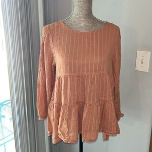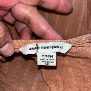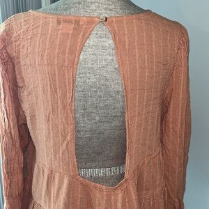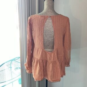 American Eagle Dark Orange Long Sleeve Tired Top Back Open MEDIUM gauze