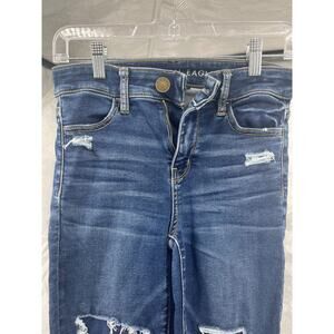 American Eagle Dark Wash Distressed Blue Denim Skinny Jeans Women's Size 0 Short