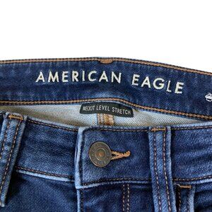American Eagle Dark Wash Jegging 6 X-Long Next Level Stretch Raw Hem Distressed