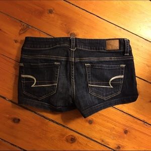 A low dark wash denim enhances the natural fit of these AEO shorties. American Eagle's innovative stretch technology doesn't disappoint and adds next-level comfort.
