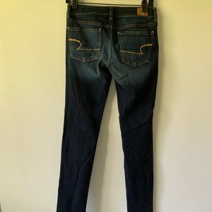 Color / Pattern: whiskering, dark wash, stretch skinny jeans