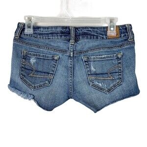 American Eagle Denim Booty Shorts Women Sz 2 Destroyed Cutoffs