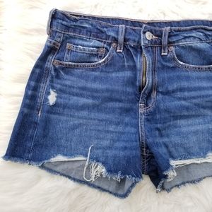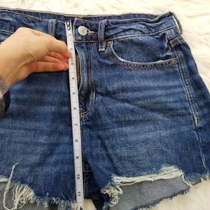 Blue denim jean high waisted shorts.