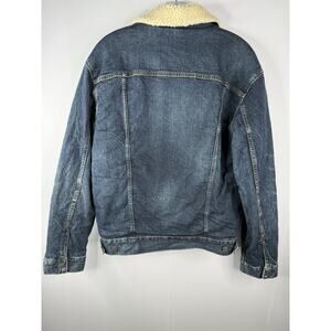 American Eagle Denim Jacket Mens Small Blue Sherpa Lined Bomber Trucker Biker