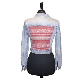American Eagle denim jacket with tribal design woven tapestry back panel