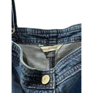 American Eagle Denim Jean Overalls Mini Dress Jumper Raw Hem Size XS Blue Casual