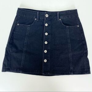 American Eagle Outfitters Denim Jean Patch Button Up Black Skirt with pockets, size 4.