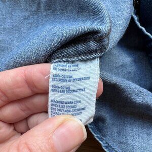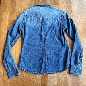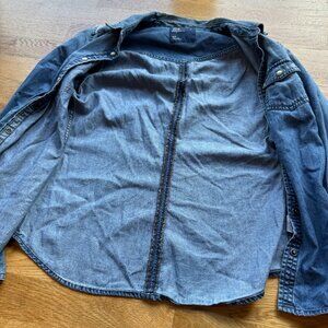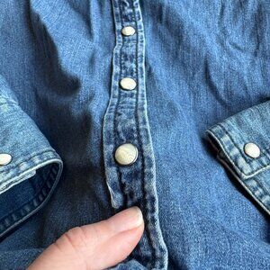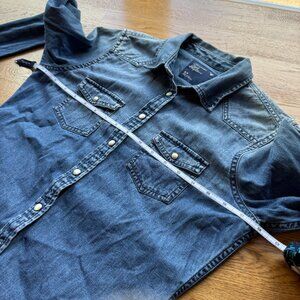 American Eagle denim ombre button up top. So cute! I love the pearl snap buttons! Size small. In great used condition. 100% cotton. Kind of an ombre effect at the top.