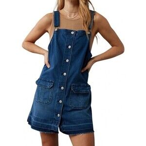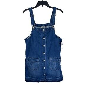 American Eagle Denim Pinafore Jumper Dress Size Medium Blue Raw Hem Pockets NWT