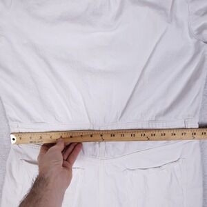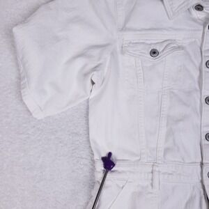 American Eagle Denim Romper XL White Short Sleeve Button Front Frayed Hem