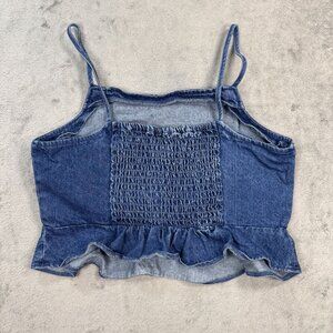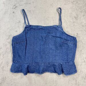 American Eagle Denim Ruffle Hem Cami Crop Top Smocked Back Y2K It-Girl Retro L