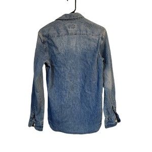 This American Eagle denim shirt is the perfect addition to your wardrobe. With a solid pattern, collared neckline, and button closure, this button-up top can be worn for both travel and casual occasions. The long sleeves and casual sleeve type make it suitable for all seasons, whether it's winter, summer, fall, or spring.