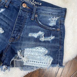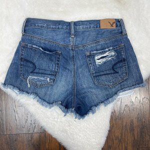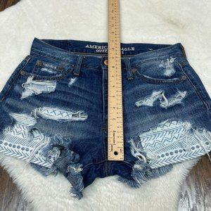 American Eagle Denim Shorts 0 Medium Wash Distressed Frayed High-Rise Festival