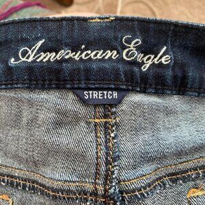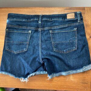 American Eagle stretch blue denim shorts. Cuffed/frayed hems, can be worn cuffed or uncuffed.