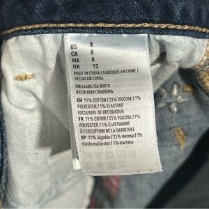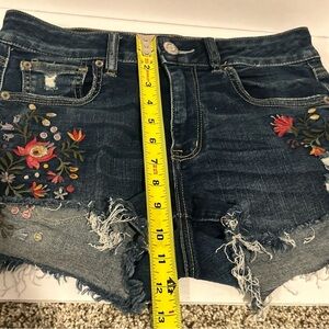 American Eagle Denim Shorts Womens 8 - Hi Rise Shortie Floral Dark Wash Ripped!