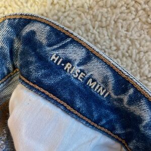 American Eagle Denim Skirt Light Blue Wash Size 2 Long. Distressed look. In perfect condition, worn a few times. I am 5’7” and the “long” size hit my mid-thigh.