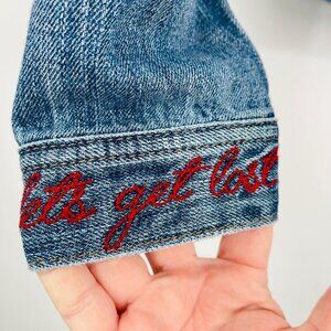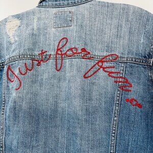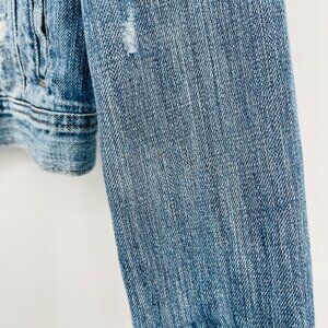 American Eagle Denim Trucker Jacket Size S Distress Embroidered Floral Cotton