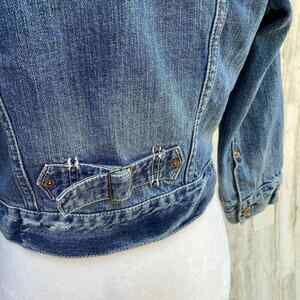 American Eagle Denim Trucker Jacket Womens Large Blue Jean Distressed