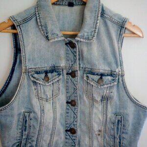 Cool distressed denim jean vest size L, but fits like a 6/8.