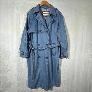 American Eagle DenimTrench Coat Medium Blue Jean Jacket Long Duster