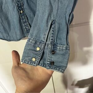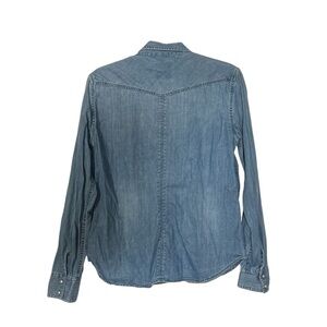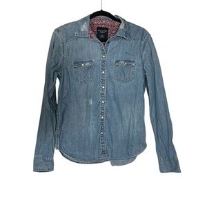 American Eagle Destroyed Denim Shirt Pearl Snaps Floral Lined Size Large