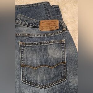 American Eagle Medium Wash Distressed 100% Cotton Made To Last Original Straight 33x32 Like New **