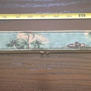 Like new condition American Eagle vintage style belt - made to look distressed (in five separate areas). Ocean scene on one side, off-white on the other with AE logo. End of belt is frayed (made this way). No stains, rips, or tears (that are not intentional). Smoke-free home. Thank you!