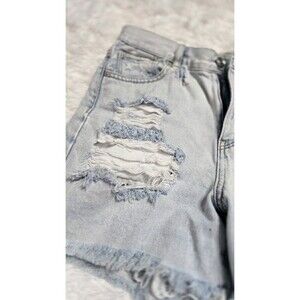 American Eagle Distressed Cotton High-Rise Mom Shorts Size 4