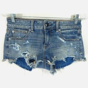 Item: Women's Shortie Crochet Pocket Distressed Denim Jean Shorts
