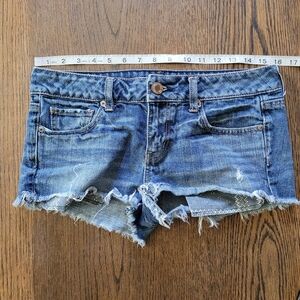 These are in very good condition. The size tag has been removed. They are the same size measurements as another pair of size 2 denim shorts from American Eagle I have in my closet. Please make sure you look at the measurements and compare them to your favorite american eagle shorts as you can not return for fit.