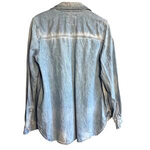 American Eagle Distressed Denim Button-Up Shirt Fun Patches | Size M