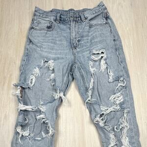 American Eagle Distressed Destroyed Blowout Mom Jean High Rise Denim Jeans 4
