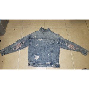 American Eagle Distressed Jean Jacket with Floral Patches on Sleeves Size S
