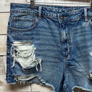 American Eagle Distressed Mom High Rise Shorts Womens Plus 18 34W Blue NWT New
