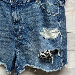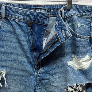 American Eagle Distressed Mom High Rise Blue Denim Shorts