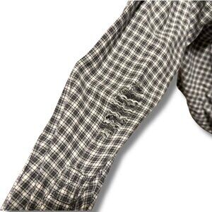 It features soft plaid fabric, a fleece hood, functional buttons, a single chest pocket, and a cropped, relaxed fit. Both sleeves have matching distressed wear (shown in photos). Super cute and cozy!