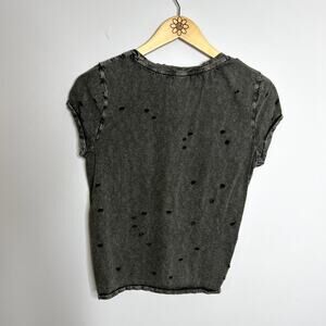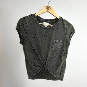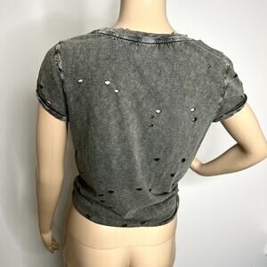 Features: short sleeves, crewneck, chest pocket, tie front, distressed/destroyed fading and holes