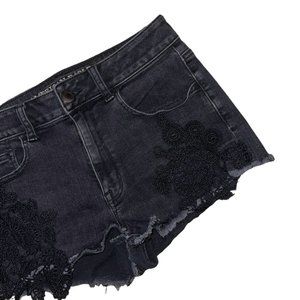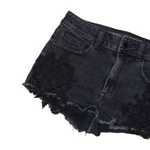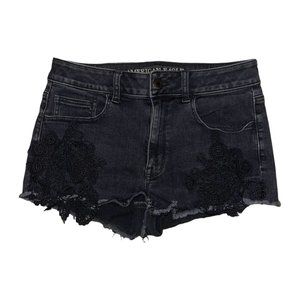 American Eagle Distressed Womens Booty Shorts 8 Black Lace HiRise Shortie