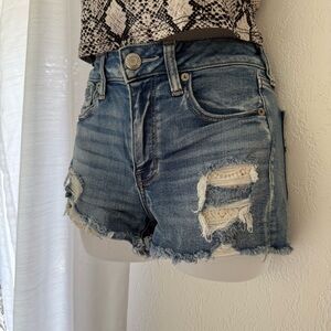 American Eagle Distressed Womens Shorts Medium Wash lace pockets high rise 4