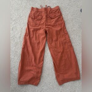 Gently used AE Dreamy Drape high rise wide leg baggy cargo pants in terracotta. Cute zipper accents with a tie waist. Drawstring in the leg for a jogger look. Size 12 short (length is 29 inches). See pics for other measurements.