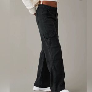 American Eagle Dreamy Drape Super High Rise Baggy Wide Leg Pant Black 16 Short