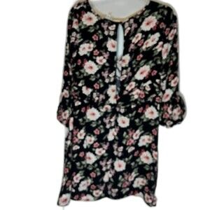 American Eagle Dress M Black Floral Long Ruffle Sleeve V-Neck Bohochic Romantic