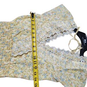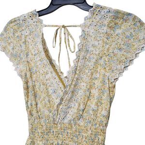 This American Eagle dress in size XS features a floral pattern with embroidered accents, making it perfect for various occasions.