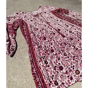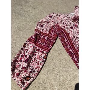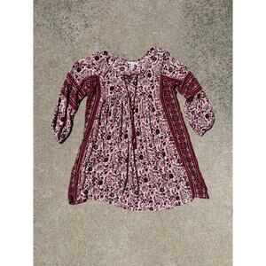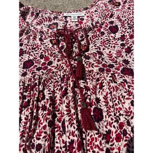 American Eagle Dress Women Size XXS Multicolor Boho Floral Maroon Rope Tassels