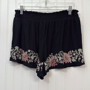 American Eagle Embroidered Black Women's Shorts Flowy Festival Boho Tassels