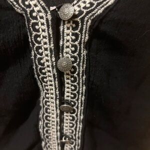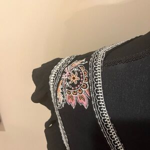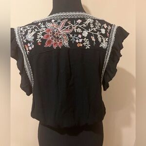 American Eagle Embroidered, Button-Front Crop Top with Cap Sleeve