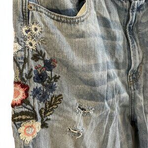 American Eagle | Embroidered Mom Jeans | 16 XLong | High Rise, Tapered Ankle